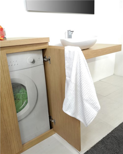 In alternativa, si può optare per un mobile a colonna che ospiti sia la lavatrice sia l’asciugatrice, da posizionare in un angolo per facilitare l’apertura delle ante e sfruttare al meglio ogni centimetro disponibile.