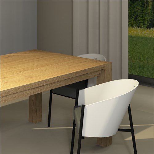 Tavolo in rovere estremamente versatile, Ligneo sprigiona un look speciale, anche grazie ai suoi imponenti gamboni a vista in massello. Perfetto per chi è alla ricerca di un tavolo allungabile (ma è disponibile anche nella versione fissa) questo elemento si integra alla perfezione in un arredamento cucina in arte povera, o per essere inserito nella sala da pranzo in stile classico. Le prolunghe a scomparsa, insieme a un look ricercato e al tempo stesso originale, gli donano la capacità di arricchire ogni spazio e al tempo stesso soddisfare le più svariate esigenze.