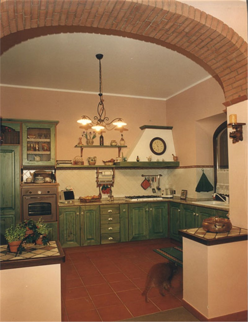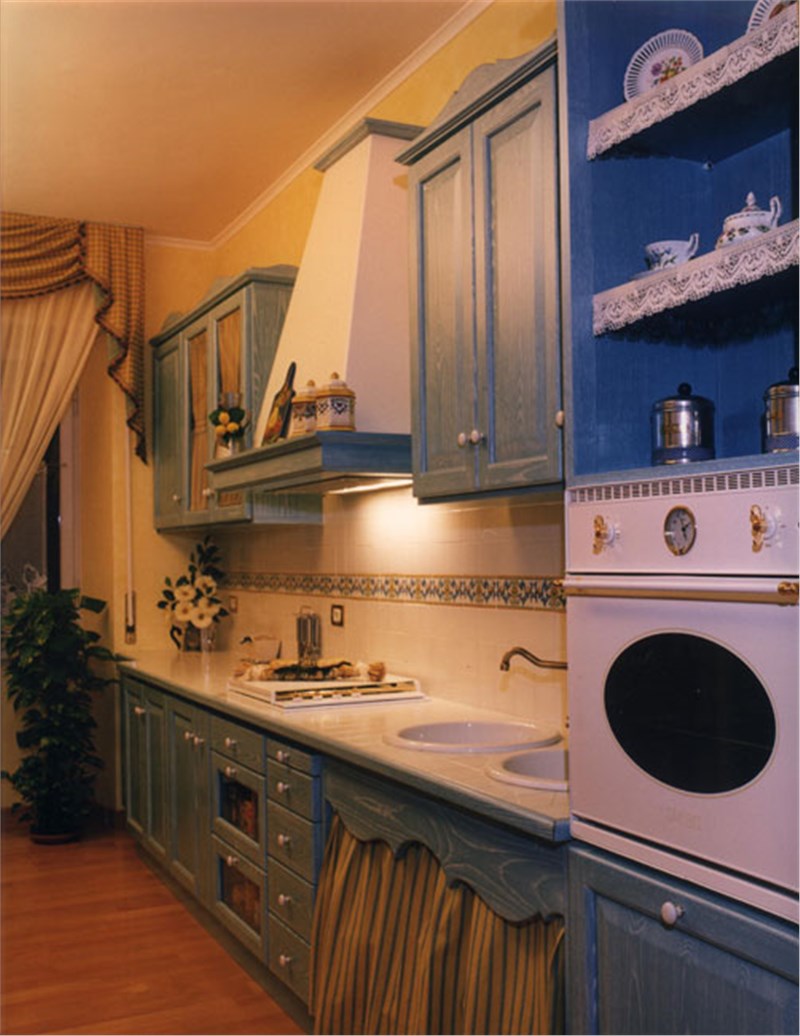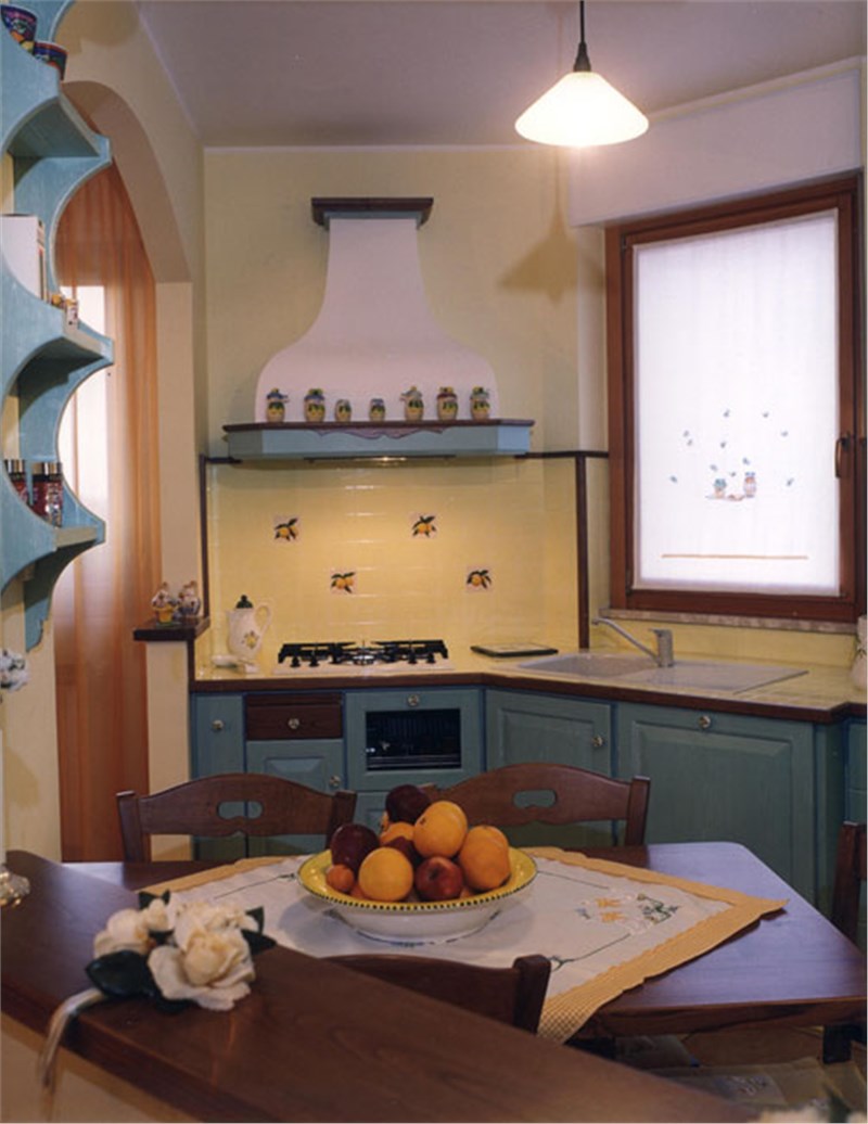 Fatte queste premesse passiamo adesso ad analizzare quali sono gli altri elementi che caratterizzano questi modelli di cucine dal fascino così romantico e dallo stile intramontabile. Innanzitutto la cappa di aspirazione, che dovrà essere in muratura. Non importa se piccola o grande, se bianca oppure rallegrata da tenui colori, l'importante è che sia in muratura.